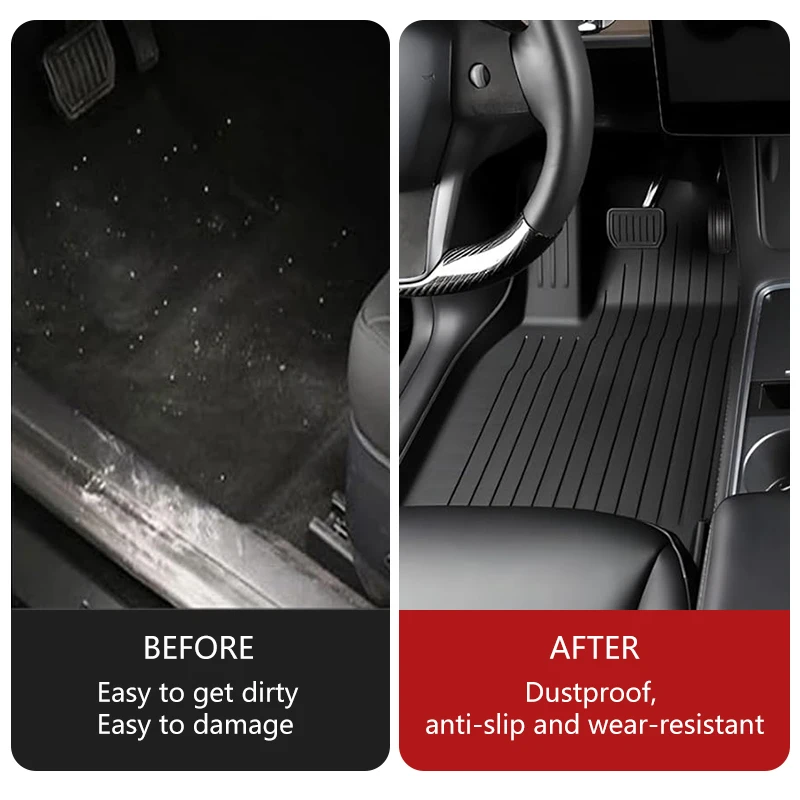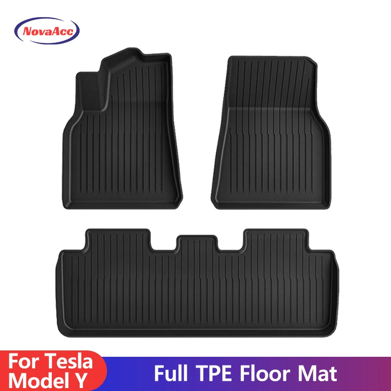 Keep your Tesla Model Y interior spotless with the NovaAcc Custom Fit Floor Mats. Designed specifically for Tesla Model Y from 2017–2024, these mats provide a precise fit that offers maximum coverage and protection. Made from high-quality TPE material, they are durable, eco-friendly, and completely waterproof. Perfect for all weather conditions, these mats protect your car from mud, snow, spills, and daily dirt. The non-slip backing ensures the mats stay firmly in place without shifting while driving. With raised edges and deep grooves, they trap liquid and debris, preventing messes from spreading across your car’s floor. Installation takes only seconds—just lay them down, and they’re ready to use. Cleaning is effortless; simply remove and rinse with water for a fresh, like-new look. These mats are lightweight yet sturdy, offering long-lasting performance without warping or cracking. The sleek design complements your Tesla’s modern interior, adding both style and functionality. Perfect for busy drivers, families, and pet owners, they provide reliable protection with minimal maintenance. Resistant to wear and tear, these mats are built to handle years of use. Upgrade your Tesla Model Y with these premium all-weather floor liners for unmatched comfort, cleanliness, and style.
